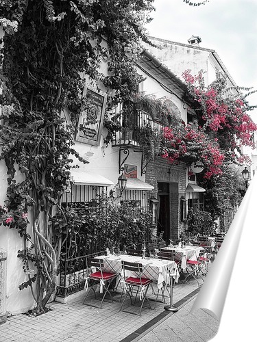 Описание плаката Марбелья в переводе означает "Прекрасное море". Фешенебельный приморский город-курорт Марбелья носит также название Испанской ривьеры и обладает замечательным микроклиматом, так как от континентальных ветров ее закрывают гребни гор Сьерра Бланка.