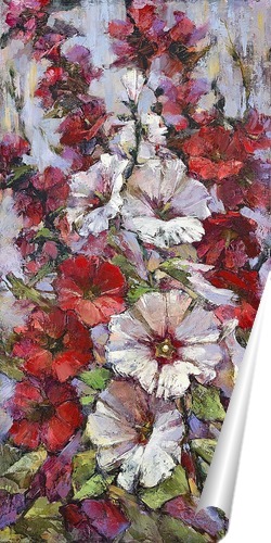 Описание плаката в японии есть древний праздник посвященный мальве. и кому как не японцам, ценителям неброской красоты, понимать скромное очарование этого цветка... может быть немного "ваби-саби"