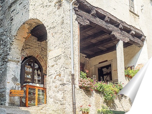 Описание плаката Согласно легенде, в озере Орта и на острове посреди него обитали морские чудовища и драконы. Городок Орта Сан Джулио стоит на самом берегу озера, а на остров Сан Джулио можно попасть на катере, отходящем от центральной площади городка.