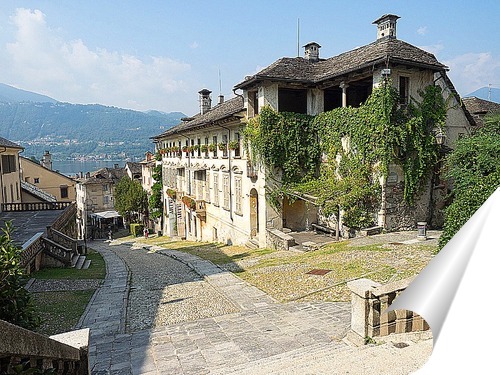 Описание плаката Согласно легенде, в озере Орта и на острове посреди него обитали морские чудовища и драконы. Городок Орта Сан Джулио стоит на самом берегу озера, а на остров Сан Джулио можно попасть на катере, отходящем от центральной площади городка.