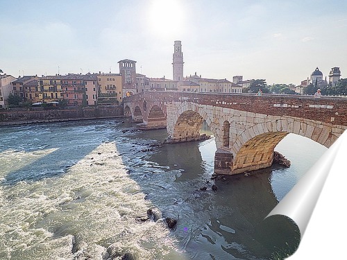 Описание плаката Верона – город в области Венеция на севере Италии. Район старого города расположен на изгибе реки Адидже. Верона известна тем, что здесь происходили события трагедии У. Шекспира "Ромео и Джульетта".