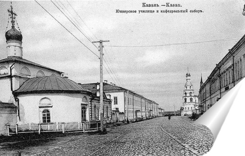 Плакат "Юнкерское училище и Кафедральный собор 1900 – 1910 , Россия, Татарстан, Казань"