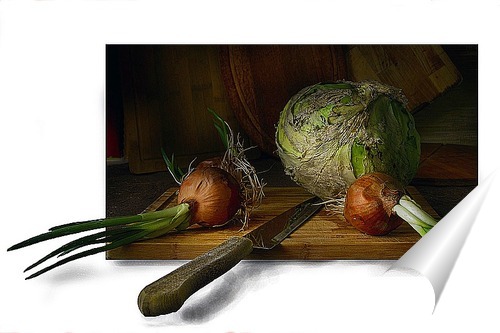 Описание плаката Композиция из набора овощей приготовленных для разделки и использовании в приготовлении семейного блюда.