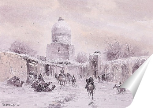 На картине изображено вид на старый караван-сарай в Бухаре зимний период