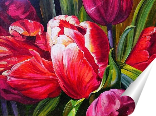 Описание плаката Тюльпаны — самые популярные весенние цветы, которые украшают наши сады, и дома. Их с удовольствием используют в декоре, им посвящают стихи и песни. Если вы любите эти очаровательные цветы,то знайте на языке цветов Красные тюльпаны являются выраж