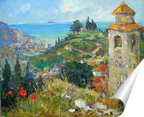 Описание плаката Работа написана на пленэре в городе Старый Бар, высоко в горах, в развалинах старой , живописной крепости