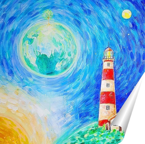 Описание плаката Картина "Планета и маяк" станет чудесным украшением вашего интерьера, будь то гостиная, спальня, детская или офис. Картина будет радовать Вас и приносить удачу!