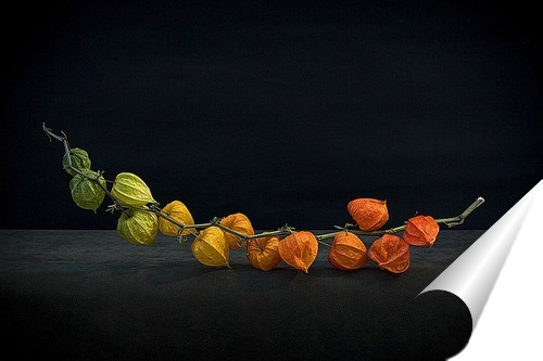 Описание плаката Минималистский этюд яркими и красивыми плодами физалиса. Интересные формы и яркие цвета создают настроение и визуальные образы.