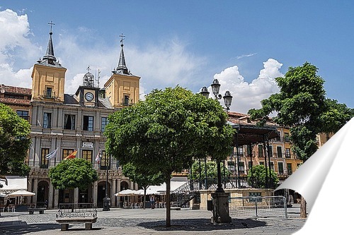 Описание плаката Сеговия - это романтичный, красивый и древний город, исторический центр которого окружён стеной и сохранил удивительные достопримечательности и памятники культуры. Древний римский акведук (является объектом Всемирного наследия ЮНЕСКО), сказочный замо