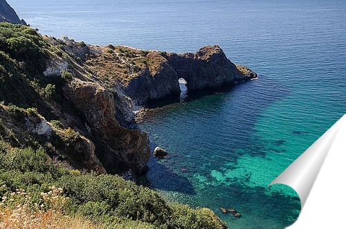 Описание плаката Живописный пейзаж с гротом Дианы на мысе Фиолент. Крым. Такой постер может украсить любое помещение вашего дома, квартиры, офиса, отеля, турфирмы.