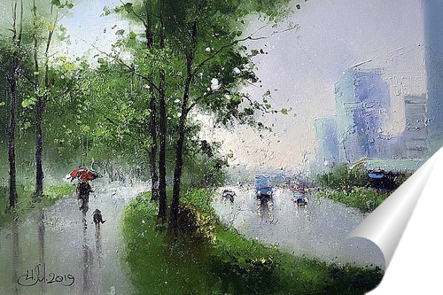 Картина сначала типографским способом переносится на холст, получается "тусклый" отпечаток низкого разрешения , затем художник расписывает ее маслом. Роспись выполняется поверх контура изображения на хлопковом холсте. Холст заполняется маслом не менее чем на 80% поверхности , при этом техника Автора может не выдерживаться, допустимы отклонения в оттенках. Срок изготовления 6-7 рабочих дней . Роспись художником это наиболее оптимальное соотношение цена/качество.