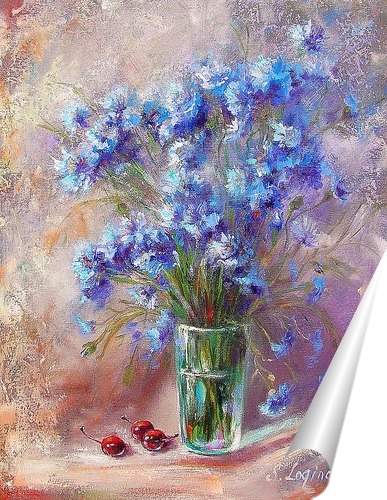 Описание плаката Картина написана на холсте масляными красками. Красивый букет синих васильков на теплом фоне. Картина в гостиную, картина на кухню, картина васильки- это очень красиво смотрится в интерьере.