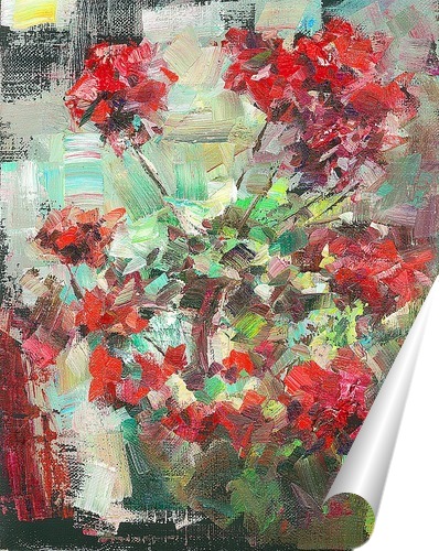 Описание плаката быстрый этюд с геранью , постер с которого послужит прекрасным украшением вашего интерьера, придаст ему деревенской теплоты.
