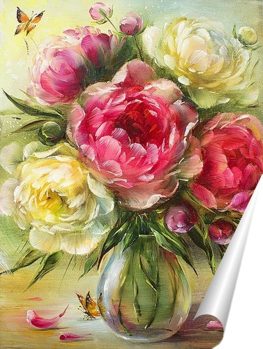 Описание плаката Картина маслом "Солнечные пионы", 2019г, 40х30, автор Богданова Ольга. Пионы восхитительные цветы, наполняют пространство приятными воспоминаниями о лете и согласно фен-шуй привносят положительную энергетику в дом:)