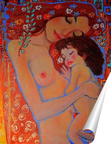 Описание плаката Оригинальная работа выполненная масляными красками на холсте натянутом на подрамник размером 30х40 см. Изображает молодую мать с нежностью глядящую на спящую малютку девочку на своей груди. Картина выполнена по мотивам произведения Г.Климта.. Выполне