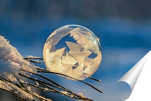 Плакат "Замёрзший мыльный пузырь на ветке сосны"