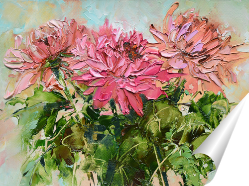 Картина сначала типографским способом переносится на холст, получается "тусклый" отпечаток низкого разрешения , затем художник расписывает ее маслом. Роспись выполняется поверх контура изображения на хлопковом холсте. Холст заполняется маслом не менее чем на 80% поверхности , при этом техника Автора может не выдерживаться, допустимы отклонения в оттенках. Срок изготовления 6-7 рабочих дней . Роспись художником это наиболее оптимальное соотношение цена/качество.