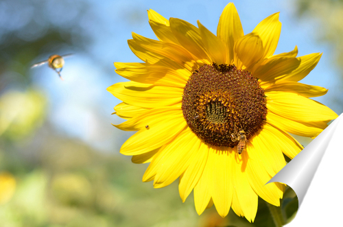 Плакат "Подсолнух с пчёлкой и шмеликом"