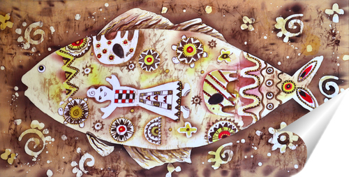 Описание плаката Абстрактная картина с рыбой.Картина в стильный интерьер.Оригинал выполнен на шёлке в технике горячий батик.Картина Елены Разиной.