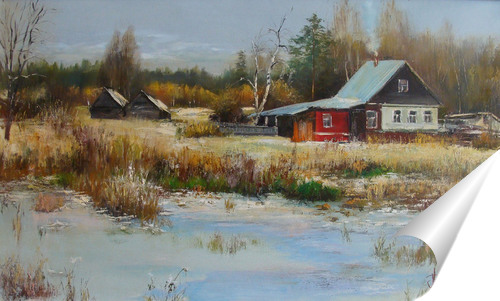 Описание плаката зима,лес,деревня,картина,село,домик,лес,осень,импрессионизм,купить постер,плакат,картина маслом,картина на заказ,Москва,картина Москва, москва река, москва сити,мгу,тверская,сельский пейзаж,деревья,природа,панно,ширма