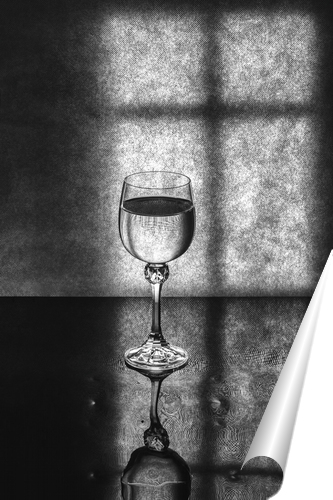 Описание плаката Бокал - это классический фотоэтюд со стеклянным бокалом. Простая композиция, где главную роль играет необычный фон, свет, цвет, формы и пространственное расположение объектов съёмки