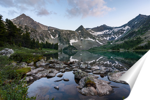 Описание плаката Сумерки на озере Крепкое, Алтай. Утих ветер. Ровная гладь воды. Только шум водопадов нарушает тишину.
