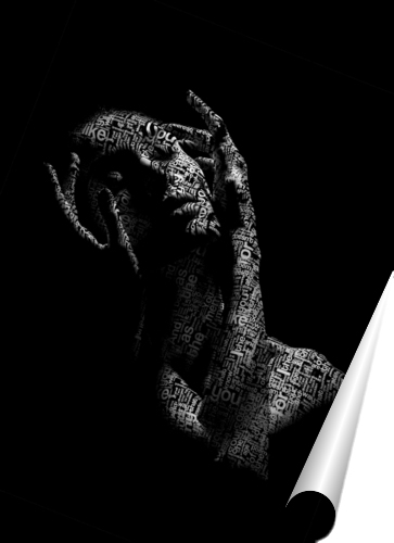 Описание плаката Цифровая графика, портрет белыми буквами на черном фоне, художник Виктор К.Доние
