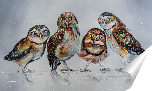 Описание плаката Работа художника Любови Купцовой. Оригинал картины выполнен маслом на холсте. Забавные птицы.