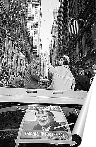 Плакат "Сенатор Джон Кеннеди и Жаклин Кеннеди на параде серпантинов."