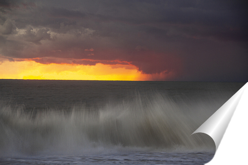 Описание плаката Морской пейзаж во время небольшого шторма, Сочи, черное море на закате, сентябрь 2021