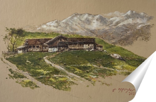 «Village in the mountains» aquarelle & gouache on paper