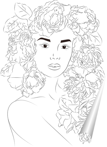 Описание плаката Векторное изображение девушка в цветах, чёрным контуром, лицо с плечом