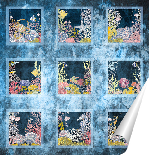 Описание плаката Ширма с изображением жителей подводного мира в холодных тонах будет отлично смотреться в вашей гостиной.