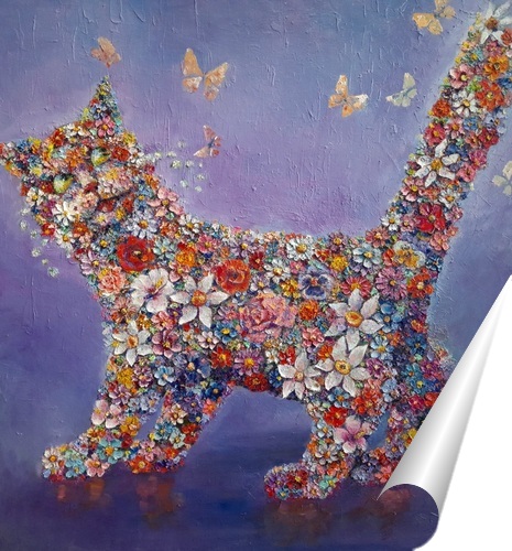 Описание плаката Детские воспоминания, любимый кот, летний день, тепло, жара, цветущий сад, тёплый день, летняя гроза, река, розы, ромашки, цветы,