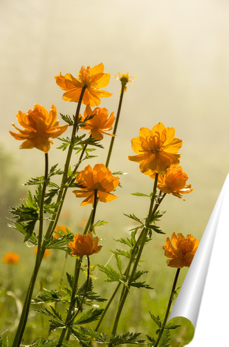 Описание плаката Горные огоньки,в народе - жарки. Горные склоны в мае покрываются огненными цветами. Алтайские горы вспыхивают пожарами цветов.