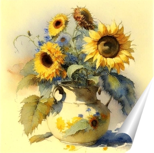 Плакат "Букет подсолнухов в вазе"