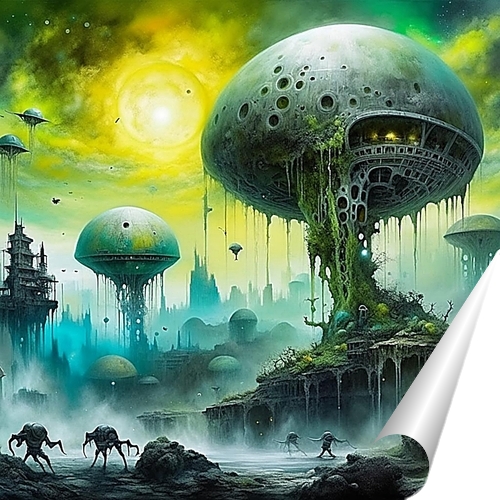 Описание плаката Загадочные и необыкновенные иные миры всегда манили художников. Абстрактный постер украсит помещение в любом стиле.