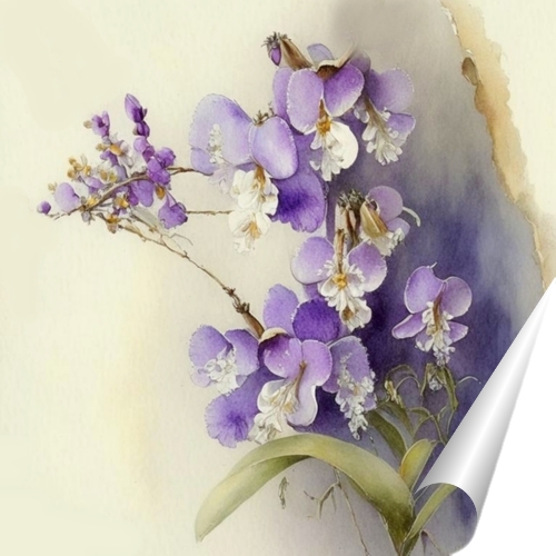 Описание плаката Нежный этюд с цветами орхидеи в кремово-сиреневых тонах идеально подходит для украшения кабинета или спальни.