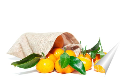 Плакат "Pile of mandarins with leaf isolated on white background"