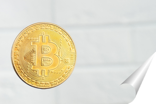 Плакат "Gold Bitcoin on a white background"