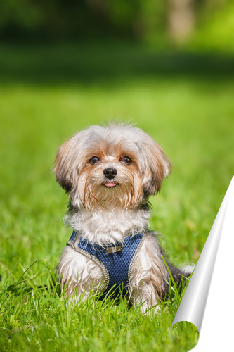 Описание плаката Beautiful puppy of bolognese dog.Maltese dog is running sitting on the green grass