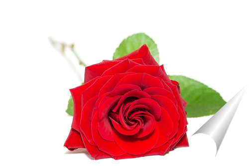 Описание плаката красная роза, выделенная на белом фоне.Одинокая красивая красная роза, выделенная на белом фоне