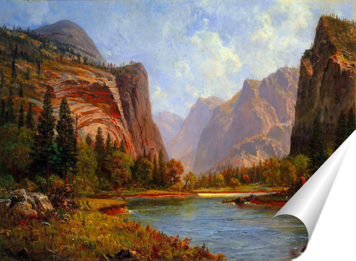 Описание плаката Пейзажи Альберта Бирштадта – есть ни что иное, как отражение его собственных впечатлений от непосредственного столкновения природным великолепием. Выдающийся американский живописец действительно увидел эти красоты своими глазами, а затем воспользовал