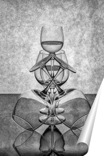 Описание плаката Это фотоэтюд со стеклянными предметами. Простая композиция, где главную роль играет свет, цвет, формы и пространственное расположение объектов съёмки.