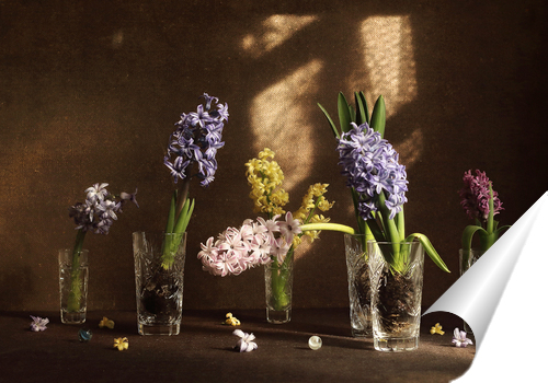 Описание плаката Гиацинты - неразгаданная прелесть, В лепесточках неги свежесть, В аромате… власть и нежность.