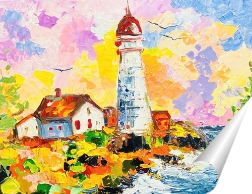 Описание плаката работа живописная ,очень теплая ,маяк. Маяк-это путеводная энергия к нашим целям . У каждого должен быть свой маяк. Маяк в интерьере -это энергия и это жизнь и настроение. Картина написана на холсте 40х50 акрилом мастихином