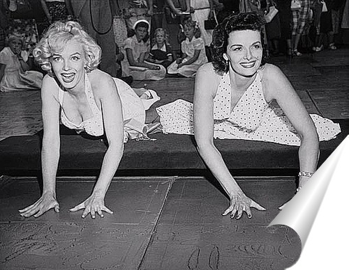 Плакат "Мерелин Монро и Джэйн Рассел на Голливудской аллее славы."
