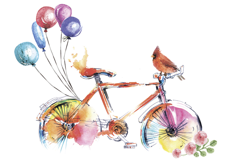 Велосипед выполненный в стиле акварельного рисунка прекрасно разбавит интерьер детской или комнаты девочки-подростка. Теплая цветовая гамма придает интерьеру тепло и уют. Лучше располагать на светлых стенах или в интерьерах выполненных в теплой цветовой гамме.