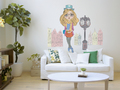 Мультяшная девочка стоит рядом с городскими часами, на фоне домиков Амстердама. Яркая простая наклейка, замечательно подойдёт в комнату девушке.