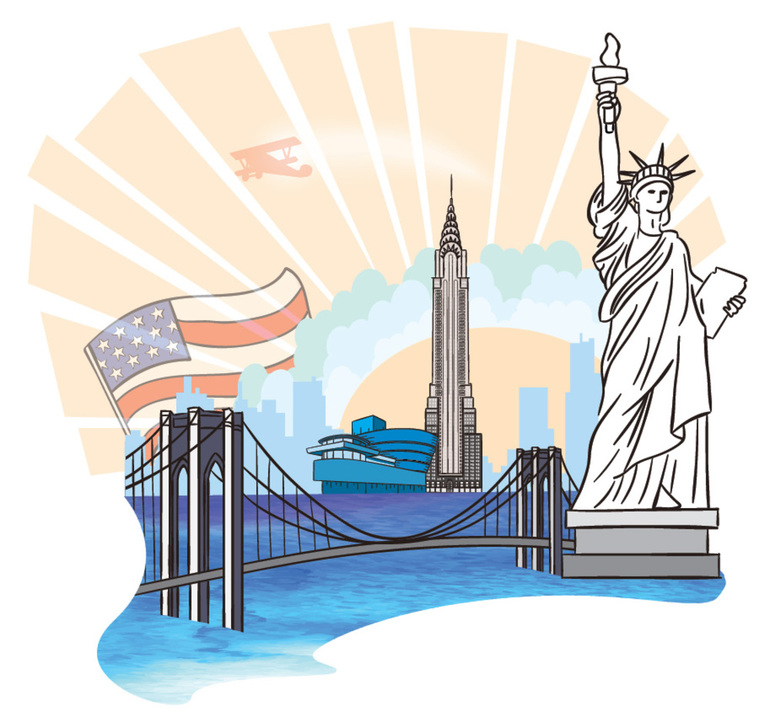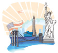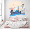 Наклейка в виде Статуи Свободы на фоне города New York, выполненная в спокойных пастельных тонах, прекрасно дополнит дизайн вашей комнаты.
